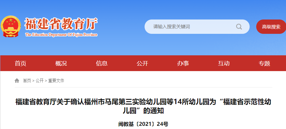 省教育廳今天發(fā)布通知,確認(rèn)福州市馬尾第三實(shí)驗(yàn)幼兒園等14所幼兒園為“福建省示范性幼兒園”。