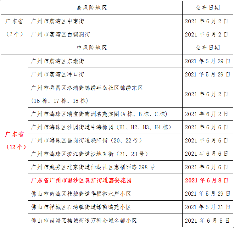 截至2021年6月8日9時,全國現(xiàn)有高、中風(fēng)險地區(qū)共14個: