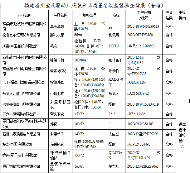 臺海網(wǎng)6月10日訊 據(jù)福建日報-新福建客戶端報道 學生服裝、兒童及嬰幼兒服裝、童鞋,這些與日常生活相關(guān)的產(chǎn)品都安全嗎?6月10日,省市場監(jiān)管局公布了抽查結(jié)果,快來看看吧!