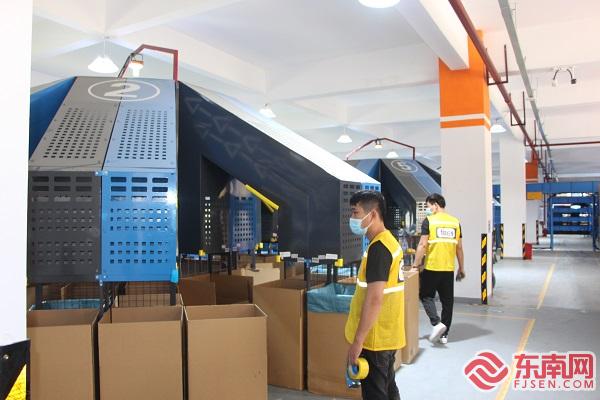 泉州分撥中心工作人員在分揀快件東南網(wǎng)記者 盧金福 攝