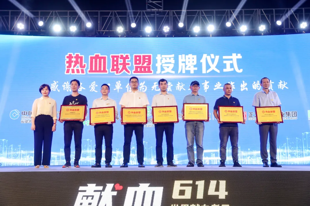 活動(dòng)現(xiàn)場(chǎng),建設(shè)銀行福建省分行、福建長(zhǎng)富乳品有限公司、福建大夢(mèng)書屋文化傳媒有限公司、福州東南眼科醫(yī)院、中國(guó)郵政儲(chǔ)蓄銀行股份有限公司福州市分行、正大天晴藥業(yè)集團(tuán)股份有限公司、EO健康沙拉等7家單位榮獲了“熱血聯(lián)盟”的稱號(hào)。