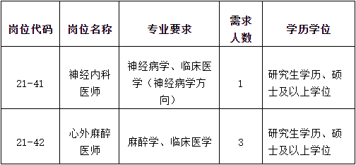 3.報考者應為2019屆、2020屆、2021屆畢業(yè)生,2019、2020屆畢業(yè)生還須具有三級醫(yī)院工作經(jīng)歷或醫(yī)師規(guī)范化培訓經(jīng)歷;