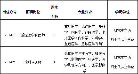 5.往屆畢業(yè)生報考者須具有三級及以上醫(yī)院工作經(jīng)歷或醫(yī)師規(guī)范化培訓經(jīng)歷,并具有相應崗位執(zhí)業(yè)資格或?qū)I(yè)技術(shù)任職資格。