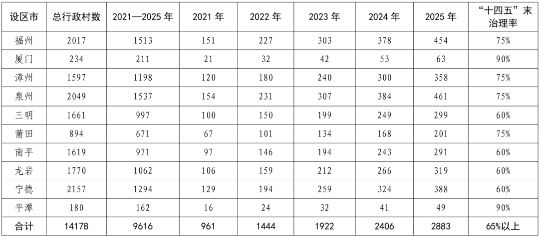 全省農(nóng)村生活污水提升治理2021—2025年度任務分解表