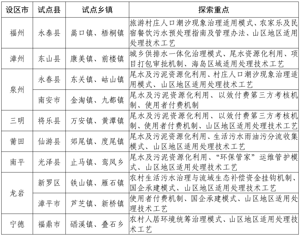 省級第一批農(nóng)村生活污水提升治理試點名單