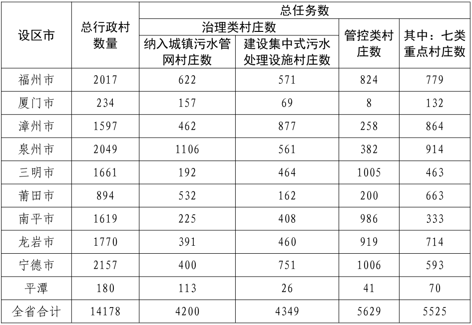 全省農(nóng)村生活污水提升治理任務匯總表