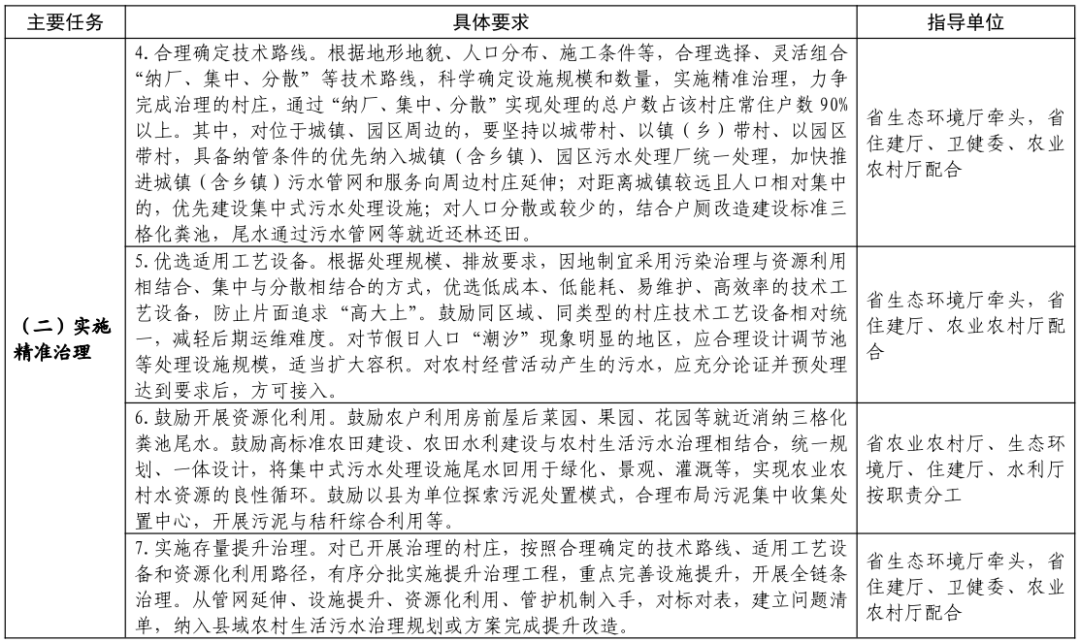 注:1.治理類村莊是指人口集聚程度高、對尾水排放有嚴格要求的村莊,主要通過納入城鎮(zhèn)污水處理廠或建設集中式污水處理設施實施治理,確保尾水達標排放。