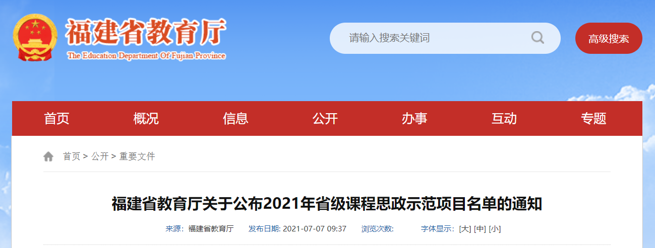 福建省教育廳關(guān)于公布2021年省級課程思政示范項目名單的通知