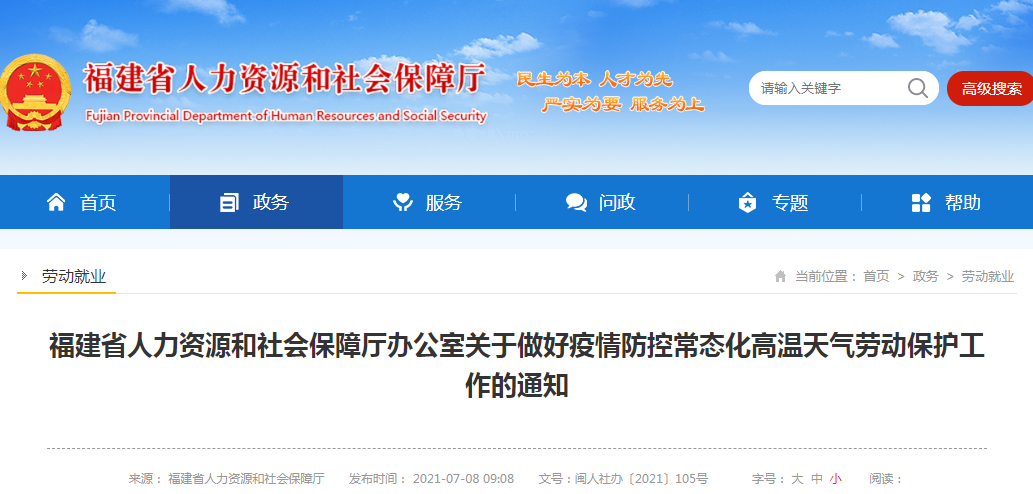 臺(tái)海網(wǎng)7月8日訊 據(jù)福建省人社廳消息 7月8日,福建省人力資源和社會(huì)保障廳網(wǎng)站發(fā)布關(guān)于做好疫情防控常態(tài)化高溫天氣勞動(dòng)保護(hù)工作的通知。