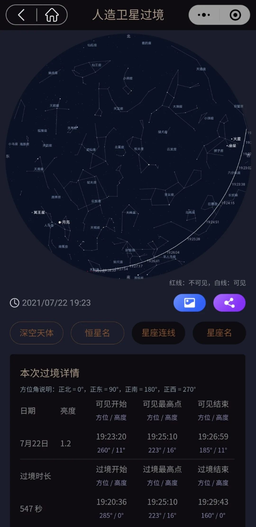 搜索微信小程序“天文通”,進(jìn)入首頁(yè)“中國(guó)空間站過境”快捷入口,便可看到中國(guó)空間站的實(shí)時(shí)位置和運(yùn)行軌跡。
