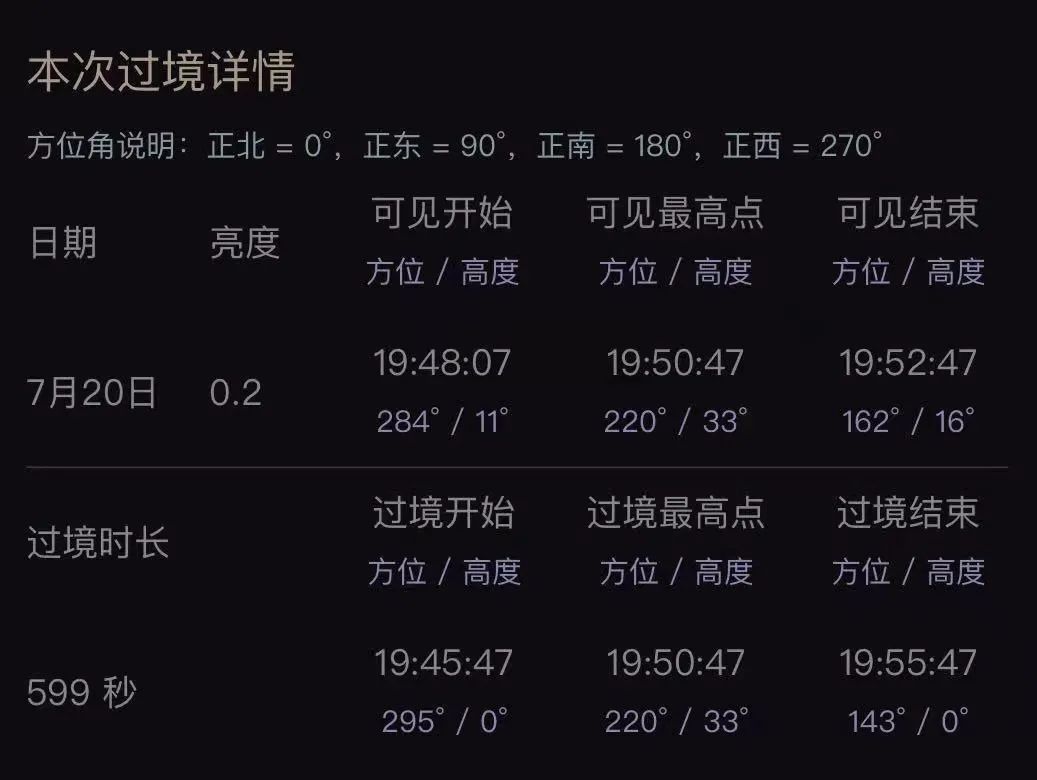 那么,最近一次可觀測(cè)的時(shí)間點(diǎn)是什么時(shí)候呢?史建春告訴記者,以福州舉例,最近的7月22號(hào)晚上7點(diǎn)25分,西南方向,高度只有15度。