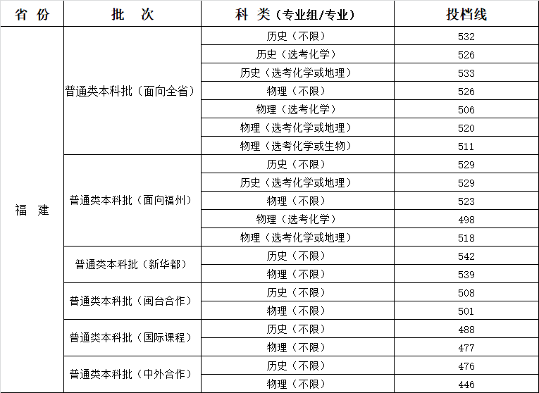 本科批(閩臺(tái)合作)