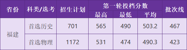 物理組(不設(shè)選考科目)計(jì)劃招生846人,投檔846人,最低投檔分435分。