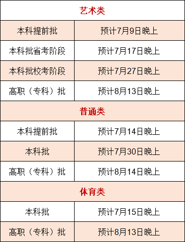 其他批次錄取結(jié)果查詢(xún)時(shí)間預(yù)計(jì)安排如下: