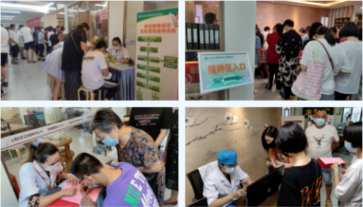 現(xiàn)場設(shè)有登記區(qū)、接種區(qū)