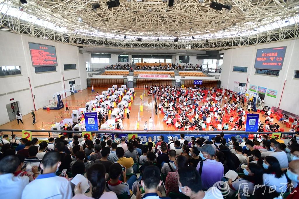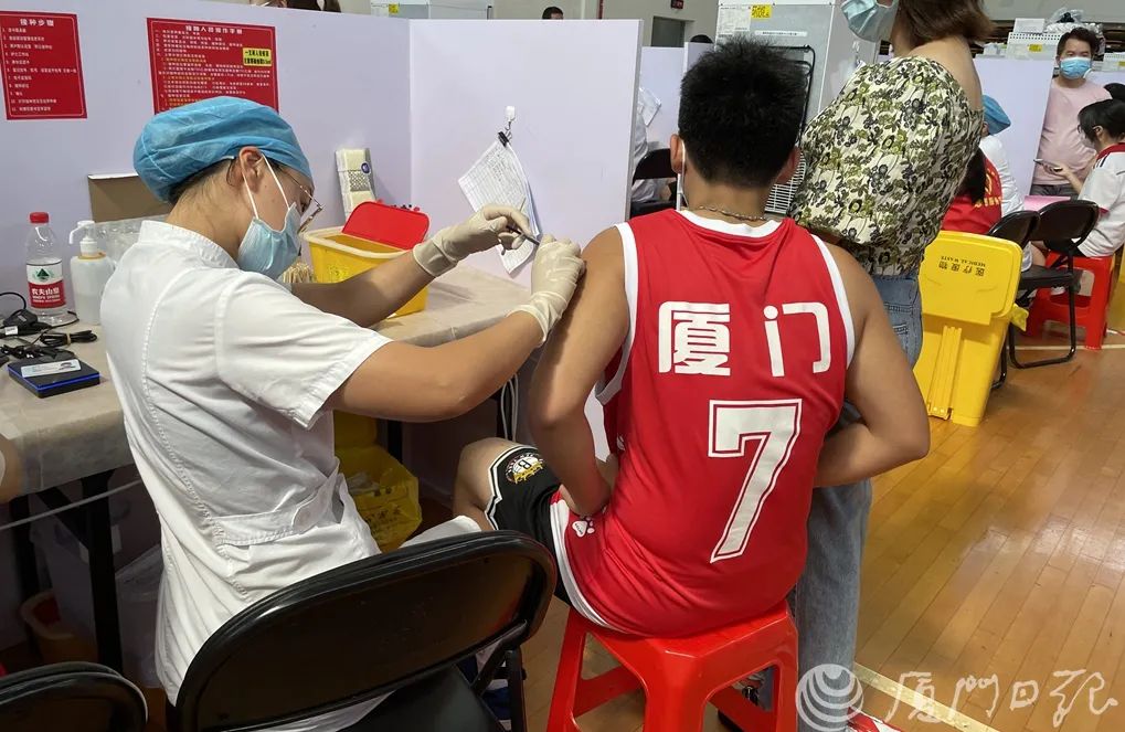 廈門于26日啟動(dòng)15-17歲人群新冠疫苗接種,據(jù)悉,當(dāng)天共有4所學(xué)校的2600名學(xué)生在廈門杏林文體中心接種。