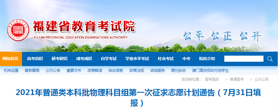 臺(tái)海網(wǎng)7月31日訊 據(jù)福建教育考試院消息 7月31日填報(bào)!福建省2021年普通類(lèi)本科批歷史、物理科目組第一次征求志愿計(jì)劃發(fā)布,詳情如下——