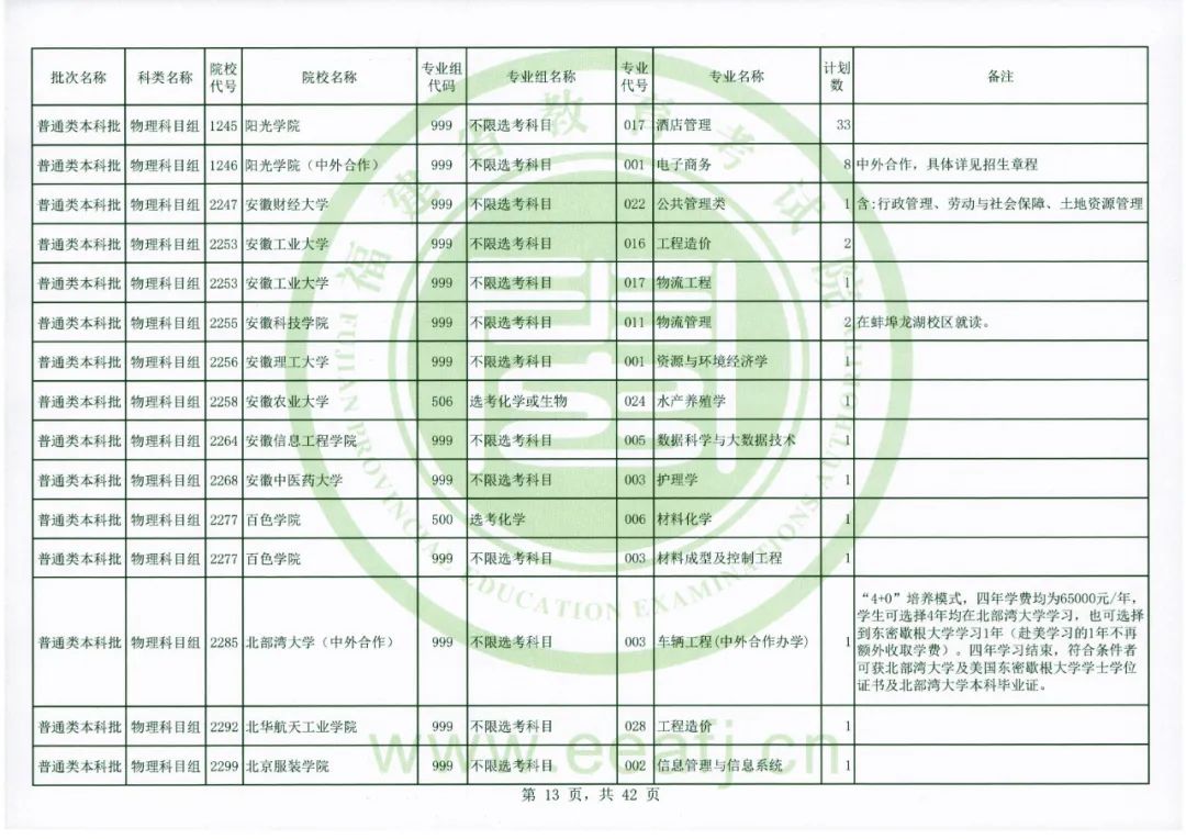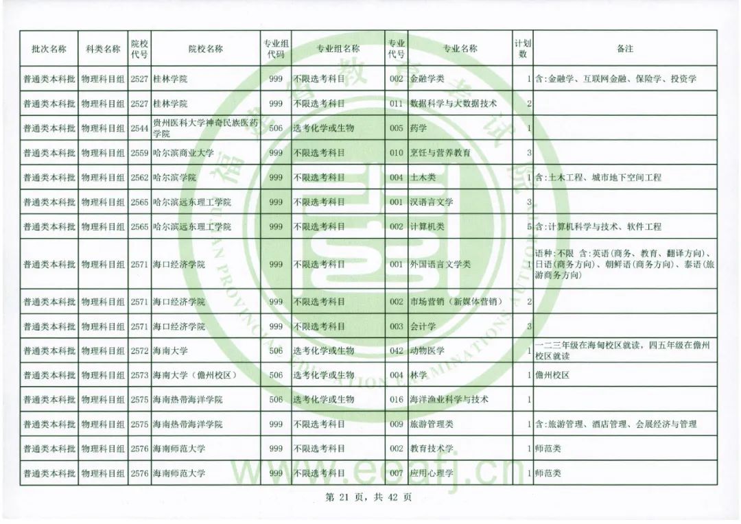 2021年普通類(lèi)本科批物理科目組第一次征求志愿計(jì)劃通告
