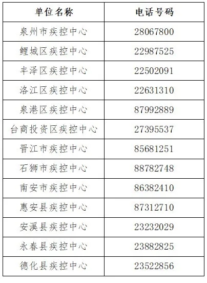 一、請在中高風險地區(qū)公布之日往前14內(nèi)有該地區(qū)旅居史或與通報病例行程軌跡有交集的人員立即向所在社區(qū)(村居)或住宿酒店進行報備或主動拔打當?shù)匾咔榉揽刈稍儫峋€,配合屬地政府落實醫(yī)學(xué)觀察、核酸檢測等健康管理措施。高風險地區(qū)入(返)泉人員嚴格實施集中醫(yī)學(xué)觀察14天;中風險地區(qū)入(返)泉人員實施居家醫(yī)學(xué)觀察14天;高中風險地區(qū)所在城市的其他低風險地區(qū)入(返)泉人員,實施14天居家健康監(jiān)測。有尚未報備的相關(guān)人員請及時向所在社區(qū)(村居)或住宿酒店進行報備或主動拔打當?shù)匾咔榉揽刈稍儫峋€,也可撥打市縣兩級疾控中心咨詢電話(附后)。