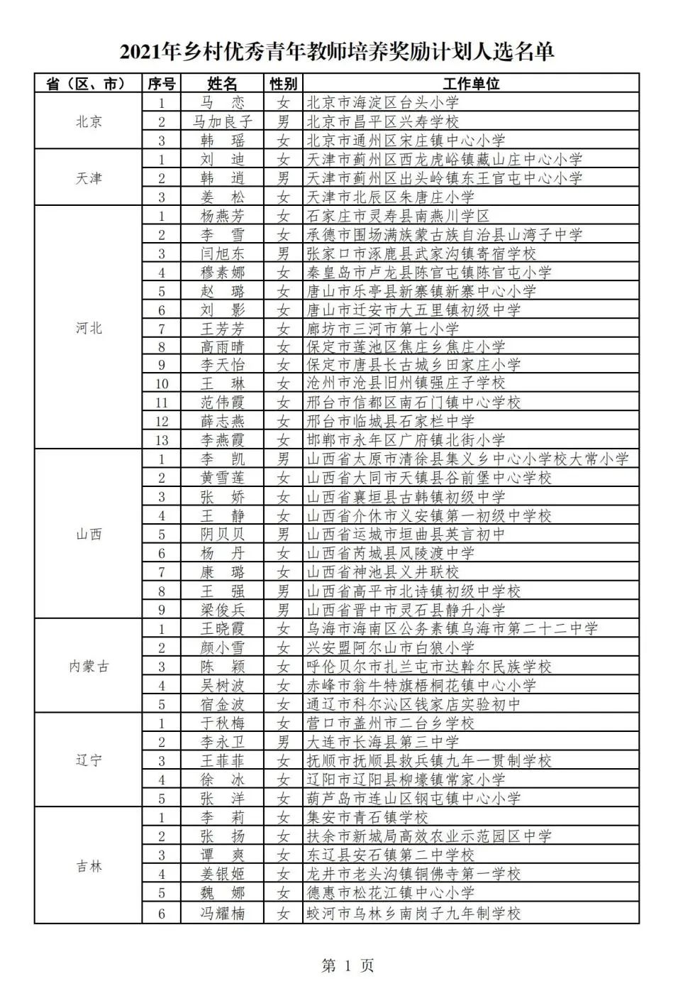 臺海網(wǎng)8月10日訊 據(jù)“微言教育”微信發(fā)布 日前,教育部教師工作司、中國教師發(fā)展基金會發(fā)布公示,經(jīng)省級教育行政部門推薦、專家審核和遴選等環(huán)節(jié),最終確定2021年鄉(xiāng)村優(yōu)秀青年教師培養(yǎng)獎(jiǎng)勵(lì)計(jì)劃入選教師300人。公示期自2021年8月9日—8月15日。
