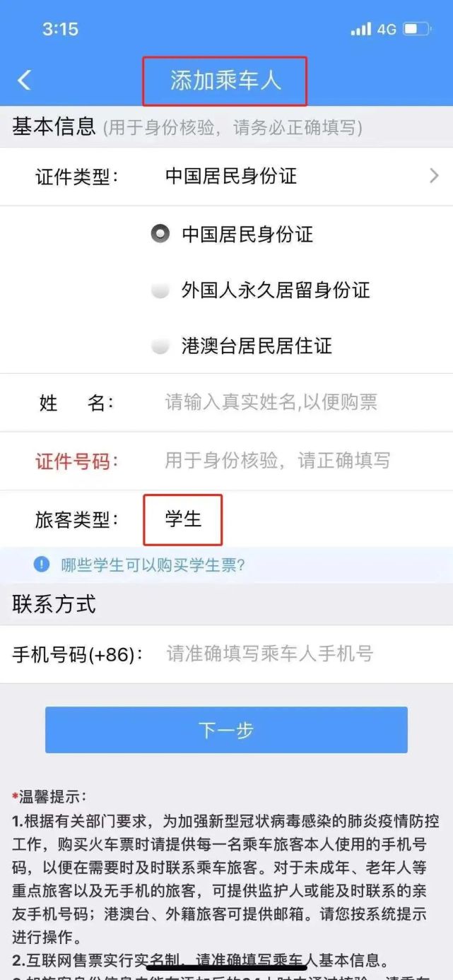 入學(xué)新生可通過鐵路12306網(wǎng)站,或手機(jī)客戶端購買學(xué)生票,在添加乘車人時(shí),將旅客類型選為“學(xué)生”。