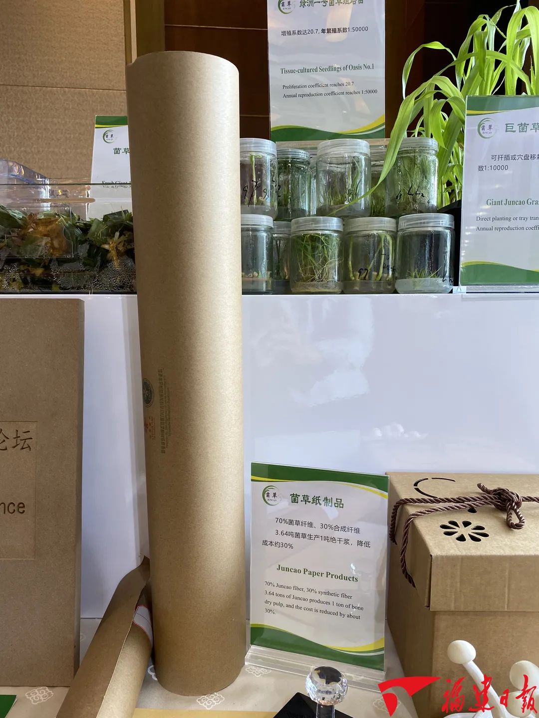 在論壇現(xiàn)場舉辦的菌草援外20周年成果展上,菌草紙制品、菌草中密度纖維板等產(chǎn)品也讓眾多與會者眼前一亮。