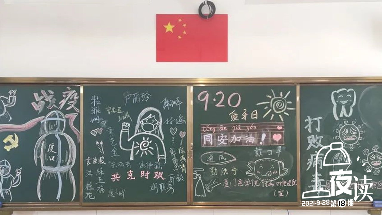 9月20日,林海醫(yī)生和同事們趁著休息時間一起創(chuàng)作抗疫黑板報。