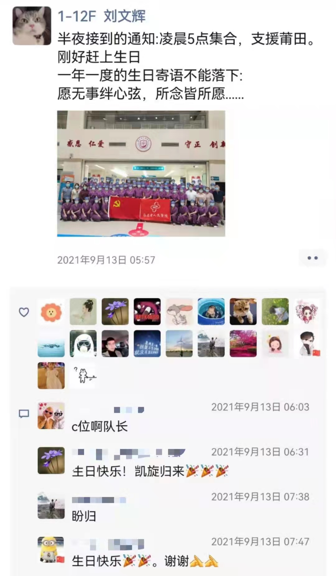 9月12日晚,正當(dāng)我在看疫情最新資訊時,好友致電我說他要去莆田抗疫了。聽了他的話,我心想若是自己也能出一份力就好了。不到10分鐘,我就接到了通知:明晨5點(diǎn)集合,支援莆田。正巧明天就是我的生日,那么,這次支援莆田的機(jī)會就是最好的生日禮物了。