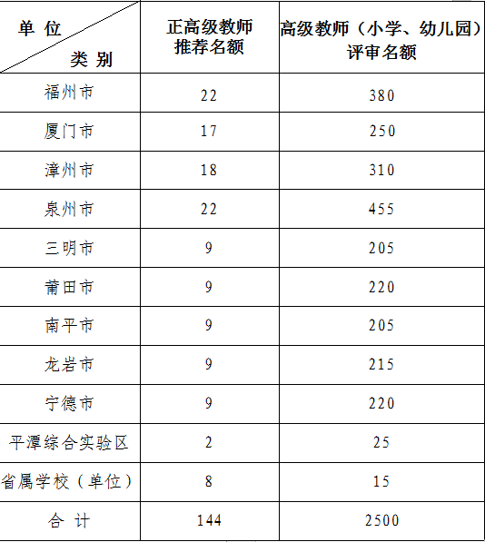 注:各地在評審小學幼兒園高級教師時可按1:1.2差額確定推薦人選。