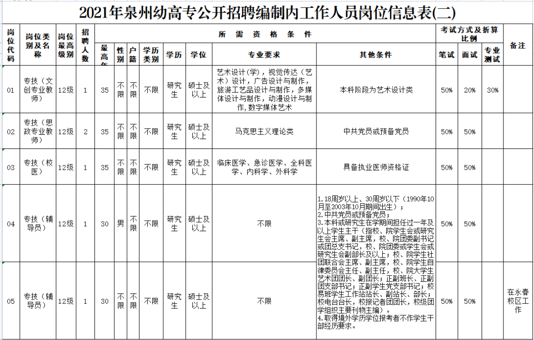 2021福建泉州幼兒師范高等專(zhuān)科學(xué)校公開(kāi)招聘編內(nèi)工作人員6人