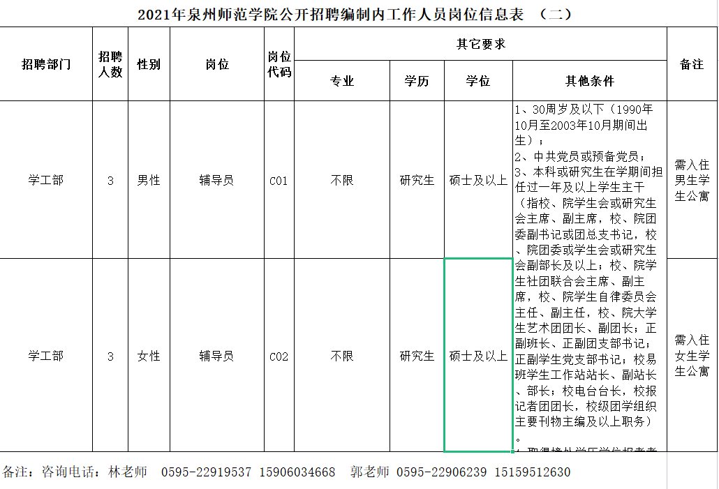泉州師范學(xué)院公開(kāi)招聘編制內(nèi)輔導(dǎo)員6人