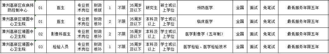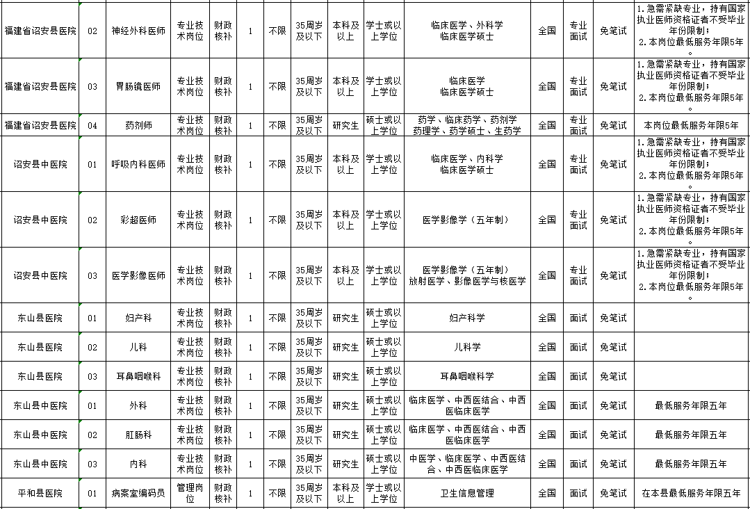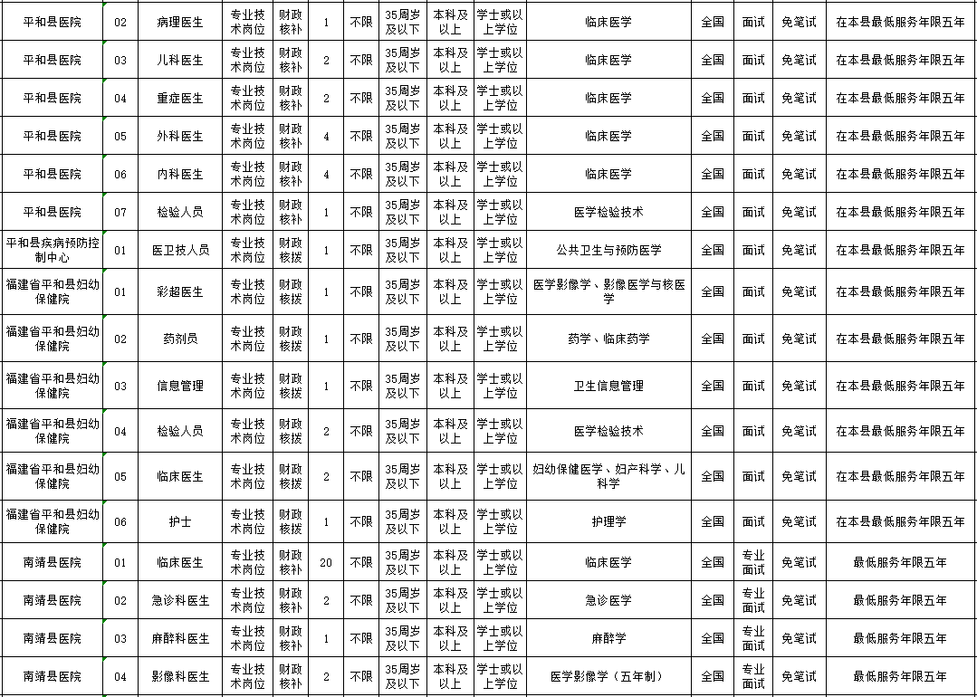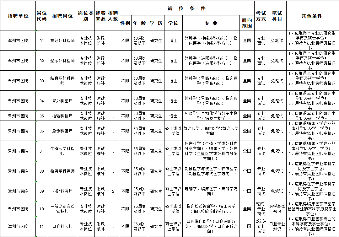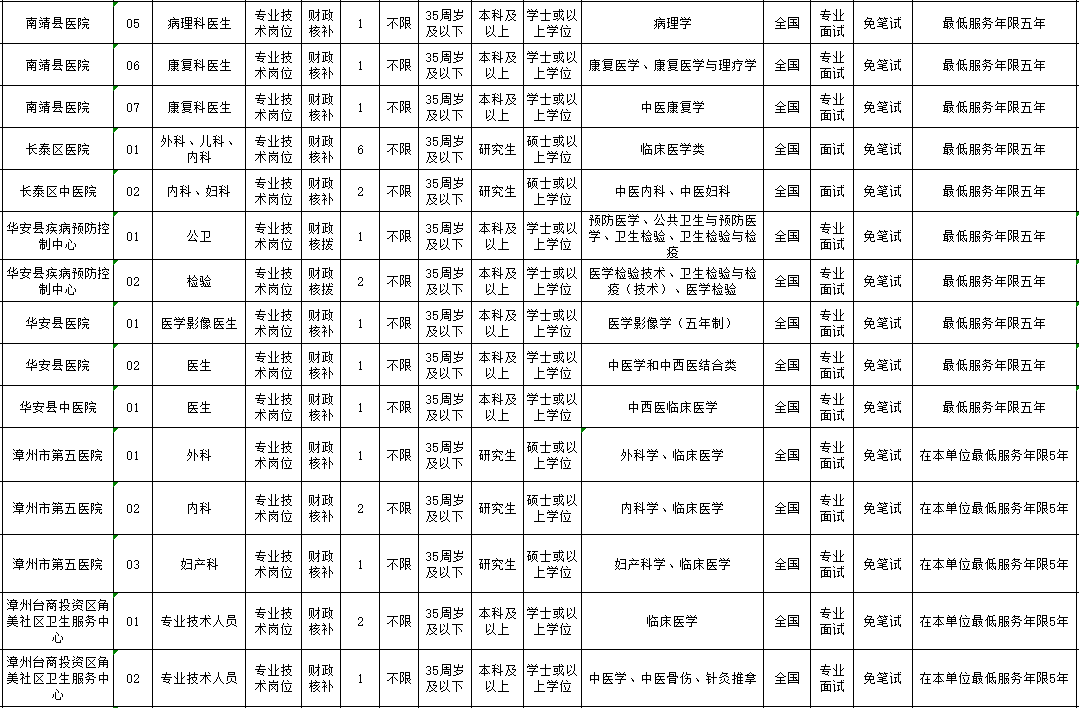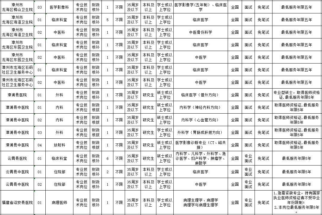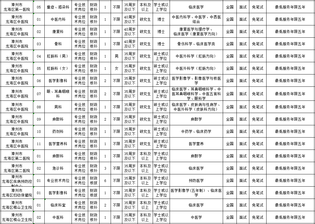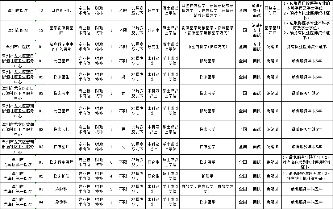 1、漳州公開招聘緊缺急需醫(yī)衛(wèi)技人才180名