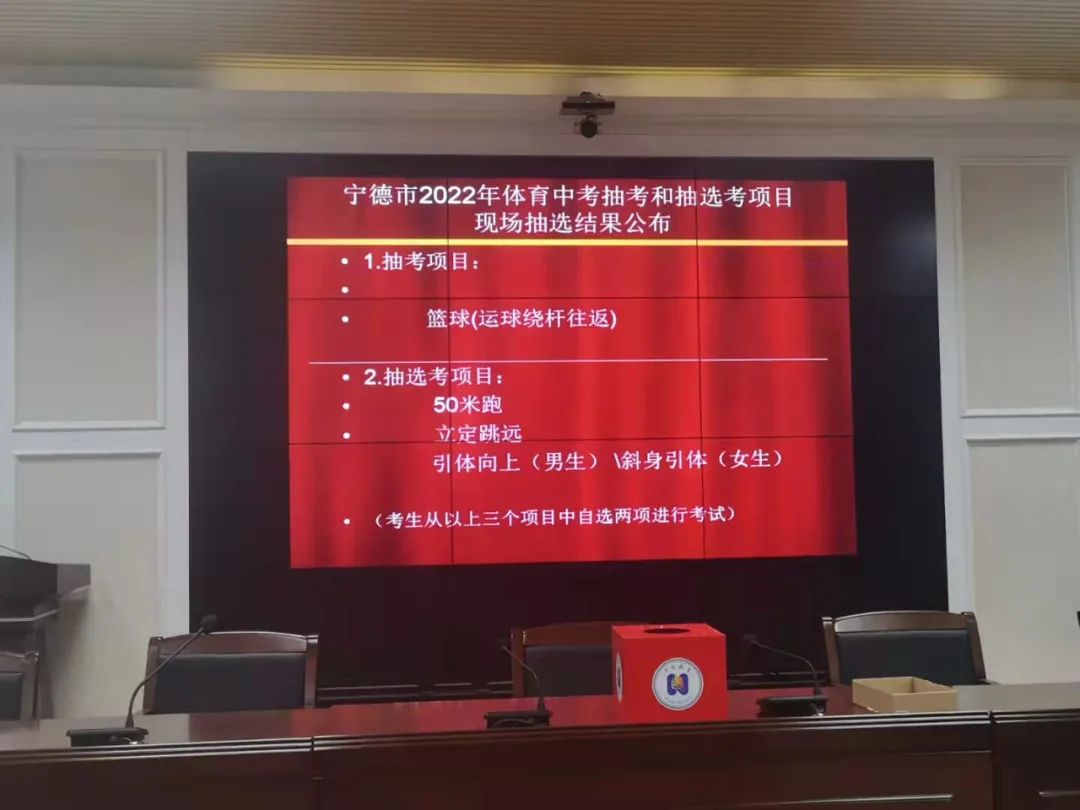 根據(jù)《寧德市初中畢業(yè)升學(xué)體育與健康考試身體素質(zhì)與運(yùn)動技能測試工作實(shí)施方案(試行)》(寧教綜〔2020〕69號)精神, 2021年11月1日,市教育局組織開展了2022年體育中考身體素質(zhì)與運(yùn)動能力測試抽考項(xiàng)目和抽選考項(xiàng)目現(xiàn)場抽選活動。在派駐市教育局紀(jì)檢組全程監(jiān)督,蕉城、東僑教育局相關(guān)人員及蕉城、東僑部分初中校教師代表、初三畢業(yè)生家長代表現(xiàn)場見證參與下,經(jīng)公開隨機(jī)抽選,產(chǎn)生寧德市2022年體育中考身體素質(zhì)與運(yùn)動能力測試抽考類項(xiàng)目和抽選考類項(xiàng)目抽選結(jié)果如下: