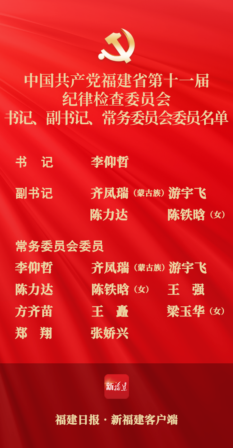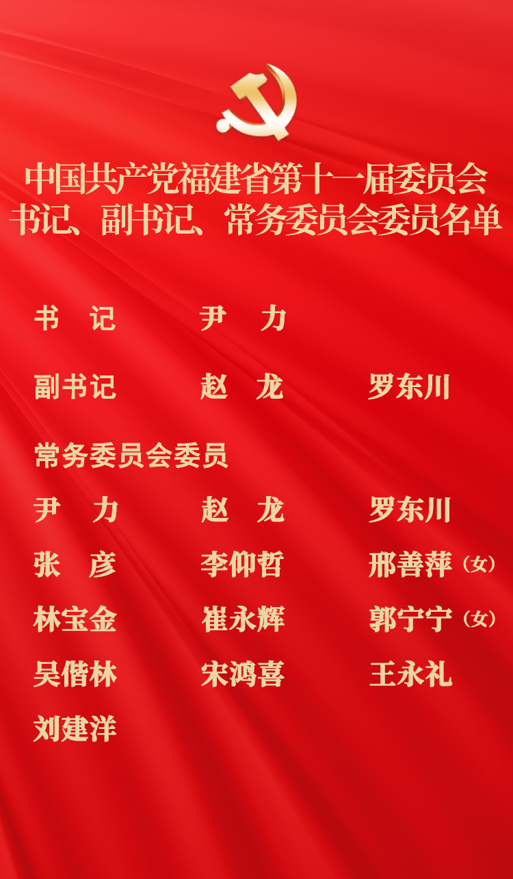 尹力 趙龍 羅東川 張彥 李仰哲 邢善萍(女) 林寶金 崔永輝 郭寧寧(女)   吳偕林 宋鴻喜 王永禮 劉建洋當(dāng)選省委常委   臺(tái)海網(wǎng)11月30日訊 (福建日?qǐng)?bào)記者 周琳)11月29日上午,中國(guó)共產(chǎn)黨福建省第十一次代表大會(huì)圓滿(mǎn)完成各項(xiàng)議程,在福州勝利閉幕。   閉幕式由尹力主持。   大會(huì)主席團(tuán)常務(wù)委員會(huì)成員尹力、趙龍、崔玉英、羅東川、張彥、周聯(lián)清、李仰哲、邢善萍...
