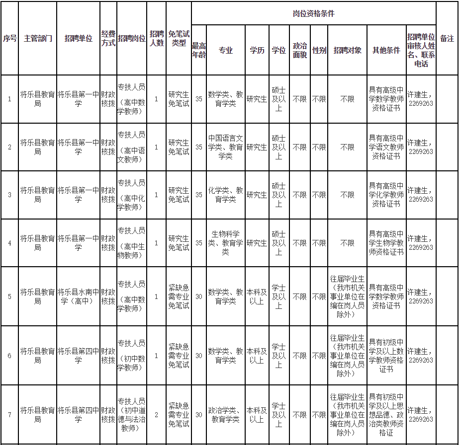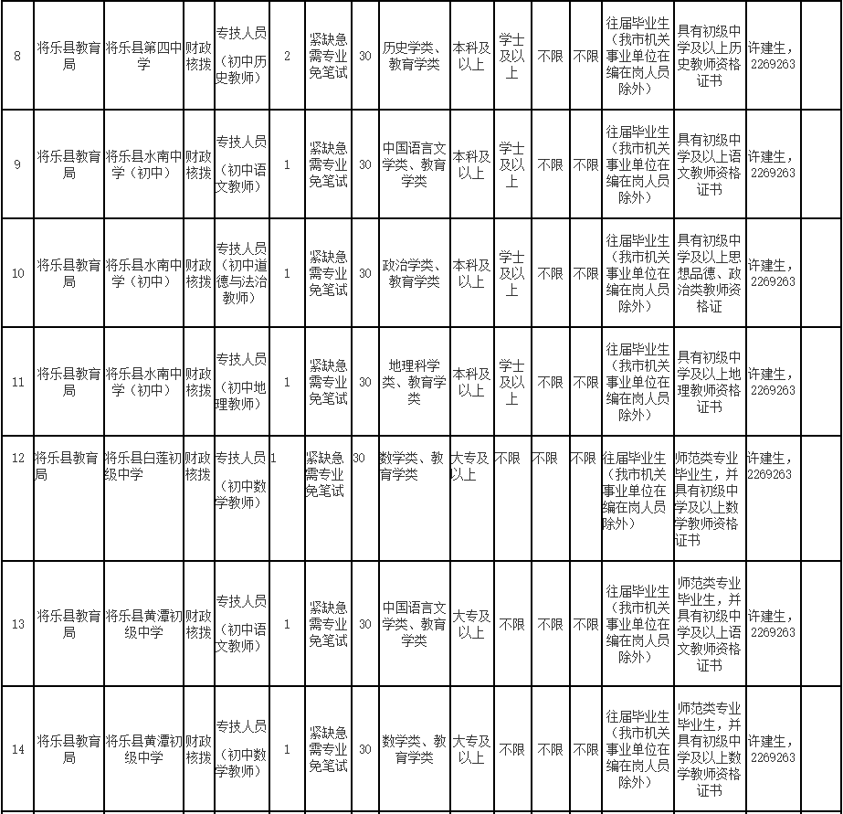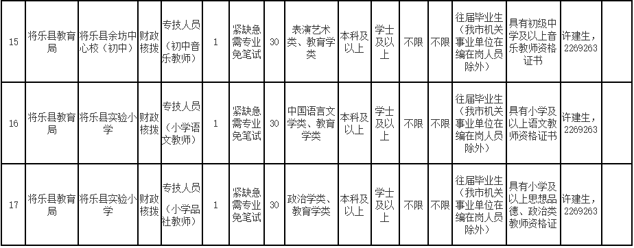 三明市將樂縣招聘緊缺急需專業(yè)新任教師19名