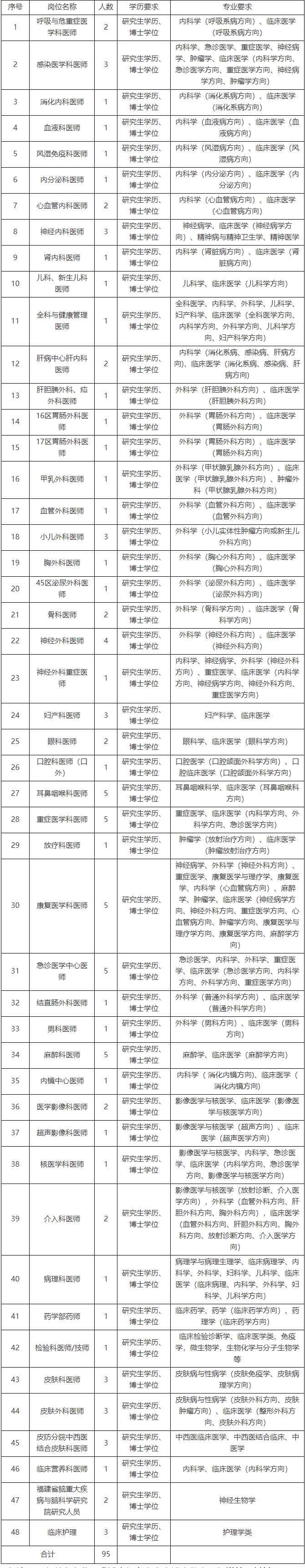 福建醫(yī)科大學(xué)附屬第一醫(yī)院招聘工作人員95名