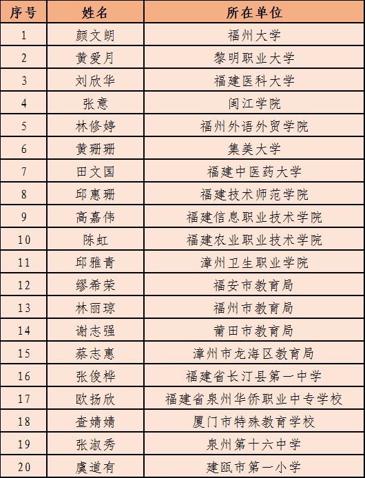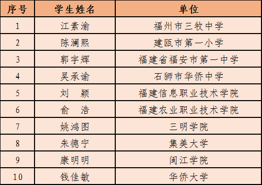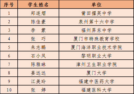 第四屆“福建勵志先鋒”名單