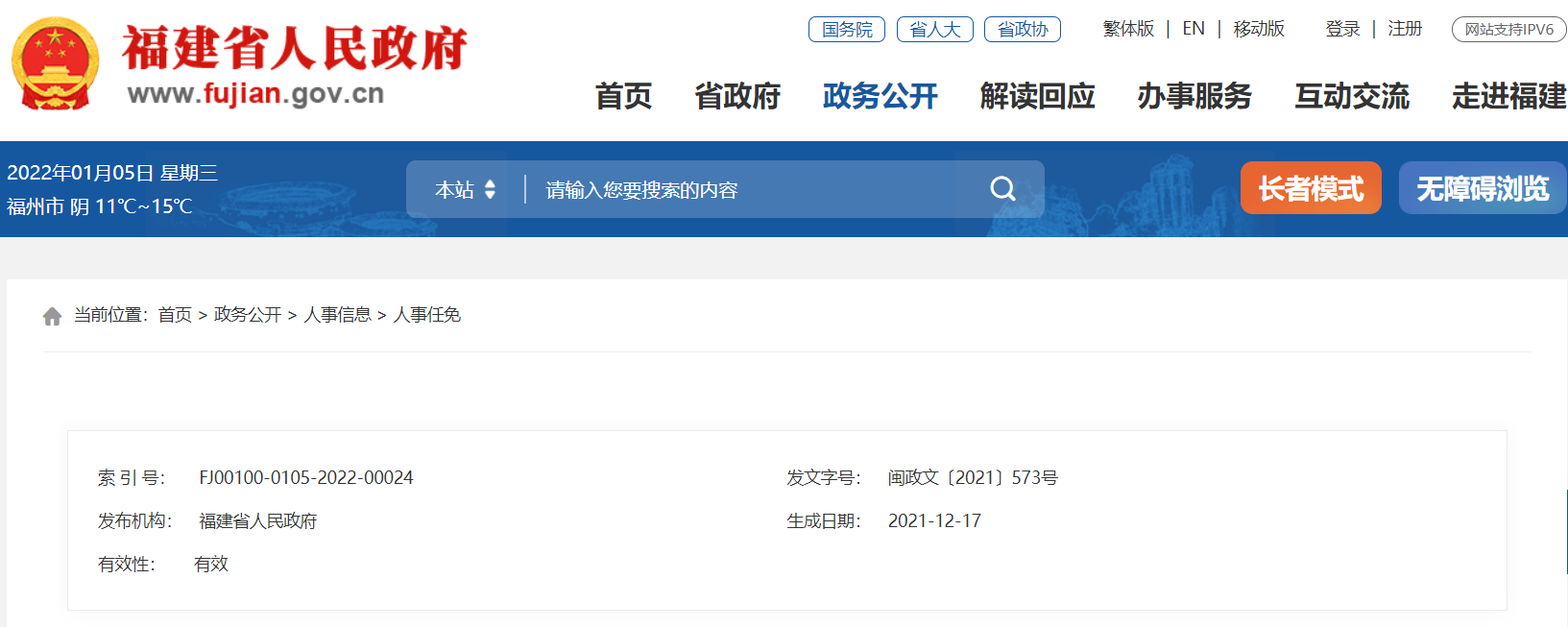 林長遠(yuǎn)兼任中國(福建)自由貿(mào)易試驗區(qū)福州片區(qū)管理委員會(福州保稅港區(qū)管理委員會)主任。
