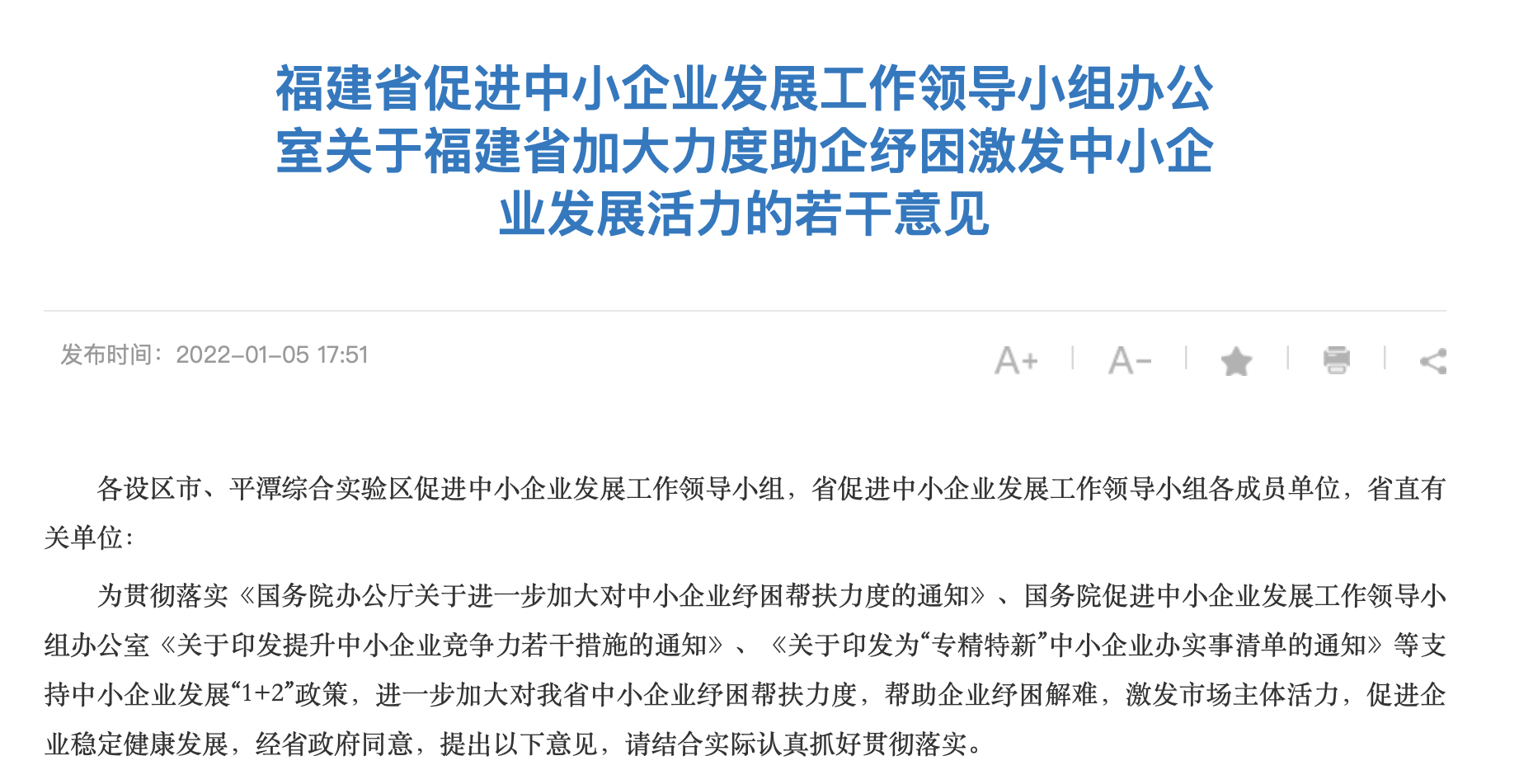 臺海網(wǎng)1月6日訊 據(jù)福建日報·新福建客戶端報道 經(jīng)省政府同意,省促進(jìn)中小企業(yè)發(fā)展工作領(lǐng)導(dǎo)小組辦公室日前印發(fā)《福建省加大力度助企紓困激發(fā)中小企業(yè)發(fā)展活力的若干意見》(下稱《若干意見》,提出十個方面28條措施,進(jìn)一步加大對我省中小企業(yè)紓困幫扶力度,幫助企業(yè)紓困解難,激發(fā)市場主體活力,促進(jìn)企業(yè)穩(wěn)定健康發(fā)展。