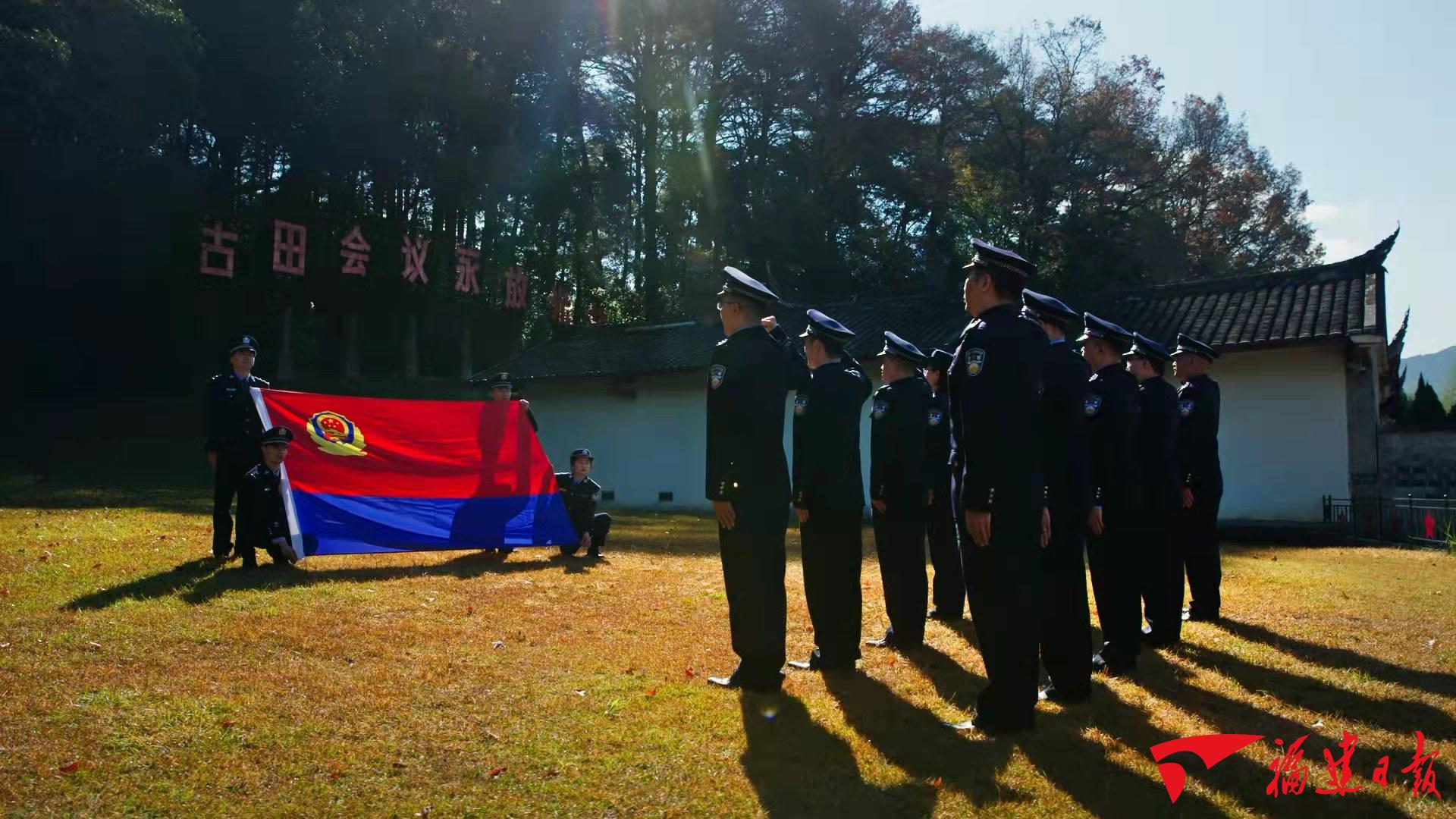省國家安全廳民警在古田會(huì)議會(huì)址重溫警察誓詞。