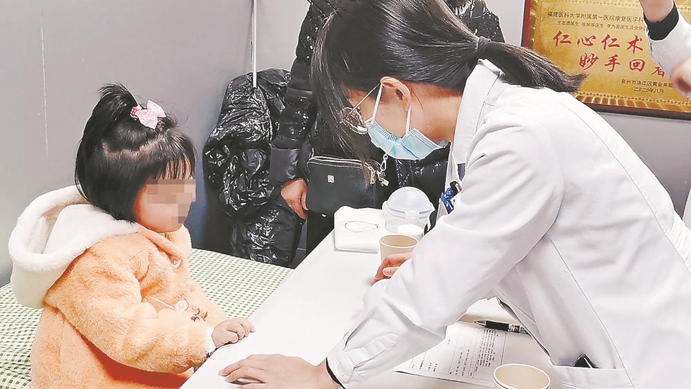 福建醫(yī)科大學附屬第一醫(yī)院神經(jīng)內(nèi)科醫(yī)生為萌萌作用藥評估。記者 張靜雯 攝