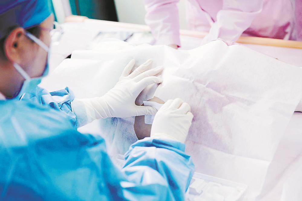 福建醫(yī)科大學附屬第一醫(yī)院多學科專家團隊采用鞘內(nèi)注射的方式為萌萌注射諾西那生鈉。記者 張靜雯 攝