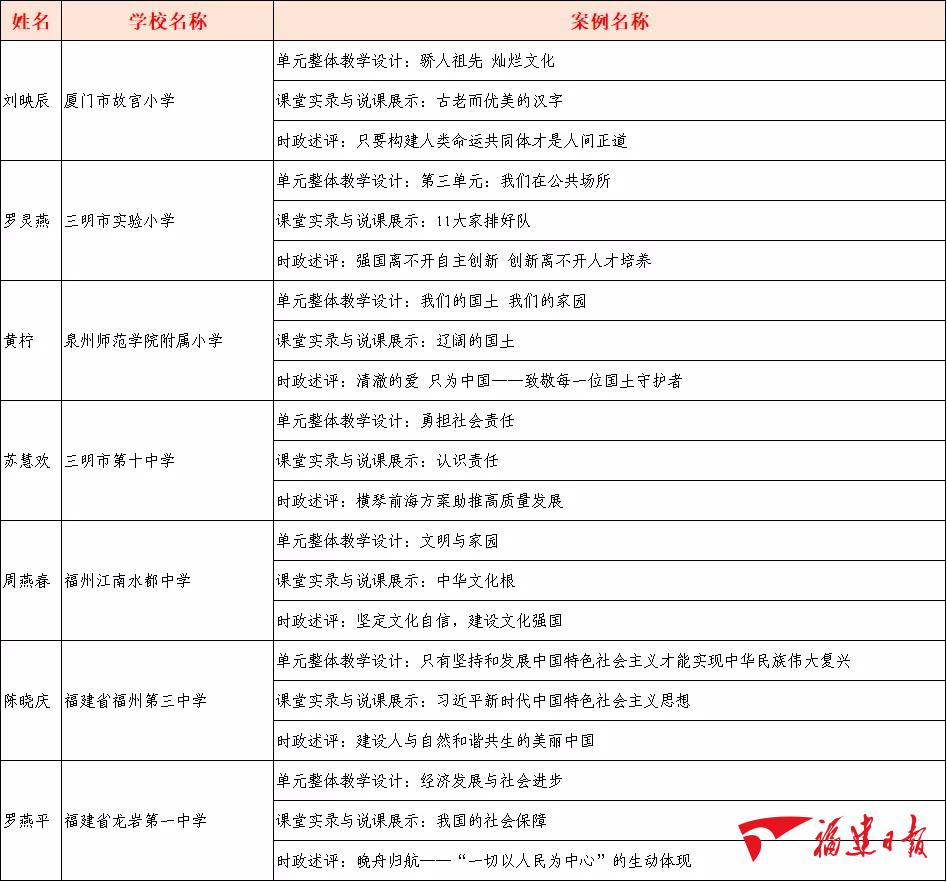 臺海網(wǎng)1月13日訊 據(jù)福建日報-新福建客戶端報道 12日,教育部公示了《關(guān)于2021年全國中小學(xué)班主任基本功和思政課教師教學(xué)基本功展示交流活動典型經(jīng)驗名單》,經(jīng)省級教育行政部門推薦,根據(jù)專家評審、綜合評判,確定2021年全國中小學(xué)班主任基本功和思政課教師教學(xué)基本功展示交流活動典型經(jīng)驗。公示期為2022年1月12日—19日。我省共有7名班主任、7位思政課教師入選。(記者 儲白珊)