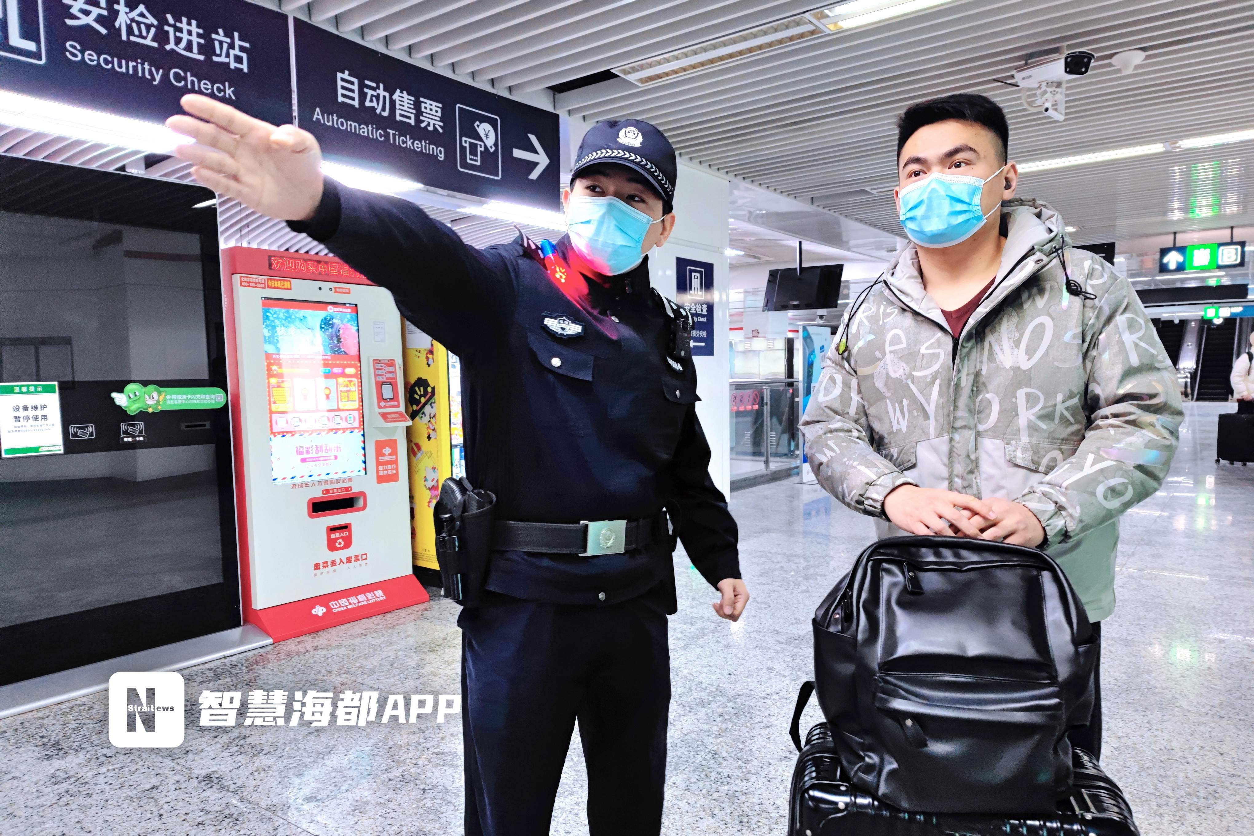 16日,記者來(lái)到福州火車站看到,不少旅客已提早踏上回鄉(xiāng)的旅程,他們紛紛在售票口或自動(dòng)取票機(jī)端領(lǐng)取車票。為保障旅客出行,福州市公安局地鐵分局羅漢山站派出所的民警在1號(hào)線火車站站執(zhí)勤,幫助有需要的旅客。