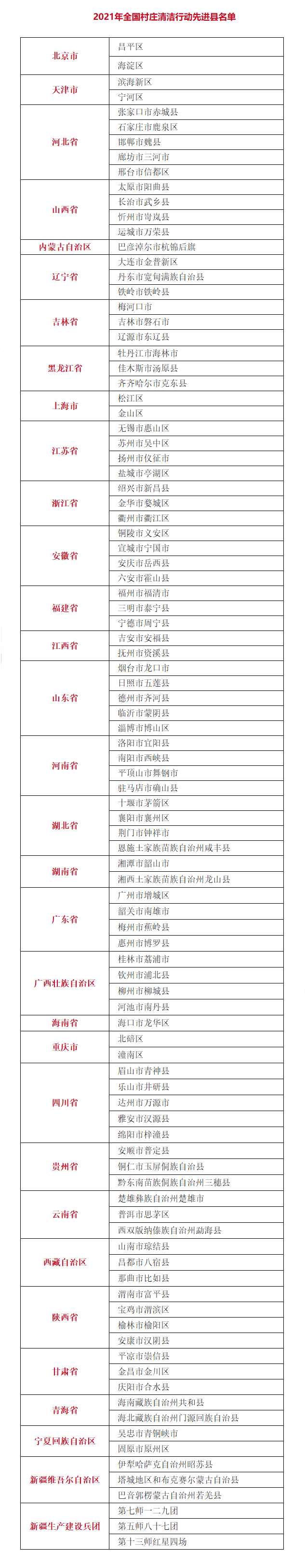 2021年全國村莊清潔行動先進縣名單(福建部分)