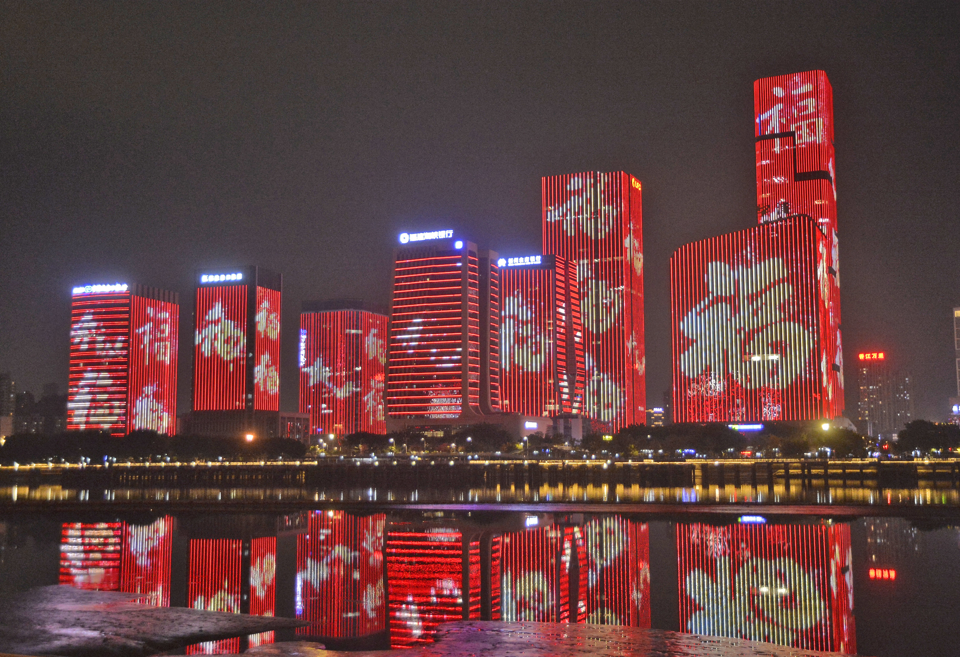1月1日晚,“福”文化燈光秀在福州舉行,閩江邊的高樓外立面上,一個(gè)個(gè)閃耀的“福”字,吸引眾多市民駐足觀看。鄭帥 吳旭濤 /攝