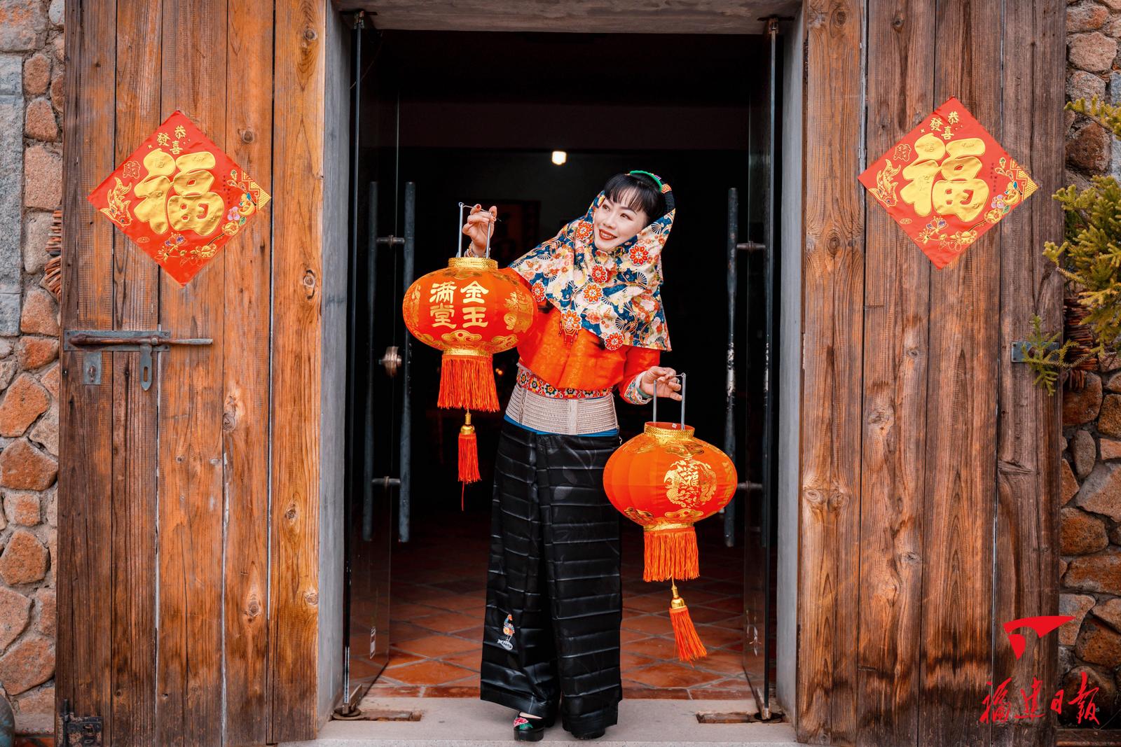 春節(jié)將至,惠安縣崇武鎮(zhèn)大岞村村民在家門口貼“福”字、掛燈籠,歡歡喜喜過大年。福建日報(bào)記者林輝通訊員陳劍陳秋紅攝