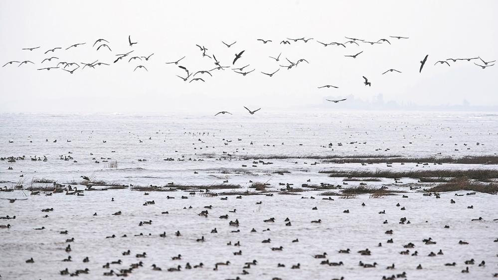 這些讓水鳥自在棲息的小沙洲,正是保護(hù)區(qū)迎合不同鳥類習(xí)性、精心營(yíng)造的人工生態(tài)鳥島。