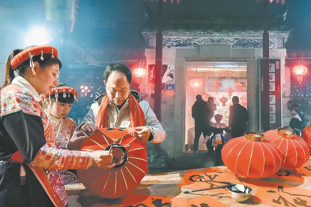 15日,羅源縣飛竹鎮(zhèn)塔里洋畬族村處處張燈結(jié)彩,熱鬧非凡,該縣書法家給畬族村民送來“福”字,共慶元宵佳節(jié)。記者 林輝 通訊員 黃益輝 劉其燚 攝