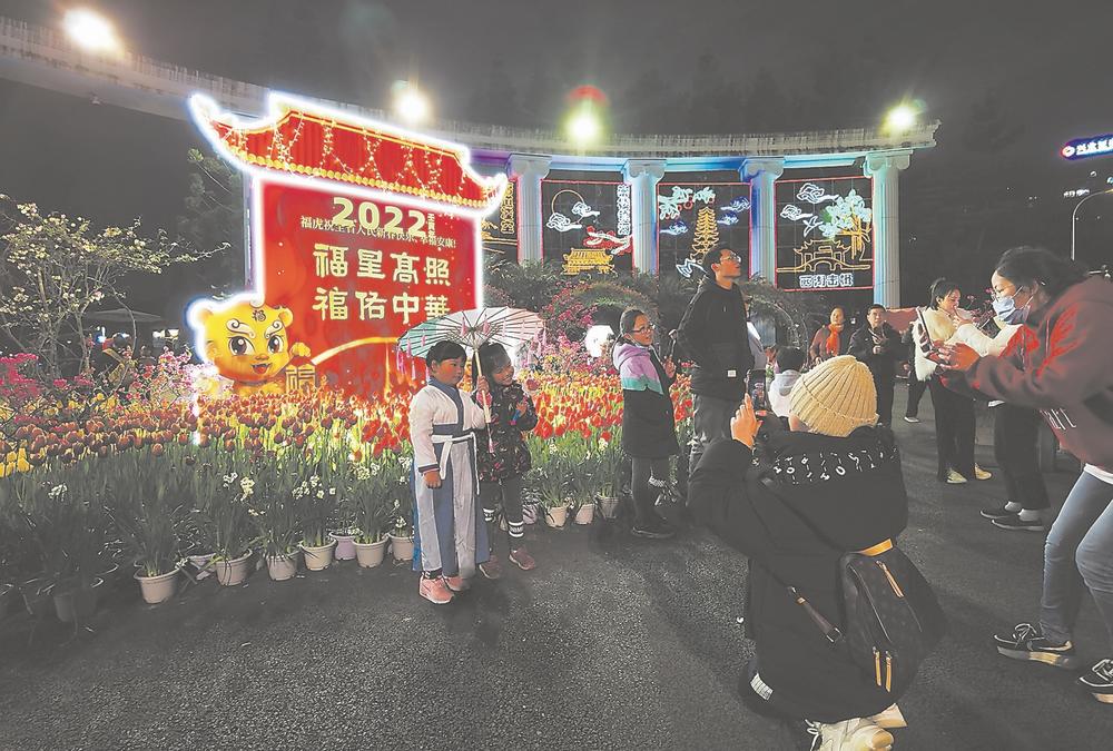 15日晚,在福州閩江兩岸,“虎娃”送福橘、民樂表演、非遺剪紙展示、送福字、吃元宵等互動(dòng)活動(dòng)接連登場。記者 林熙 攝